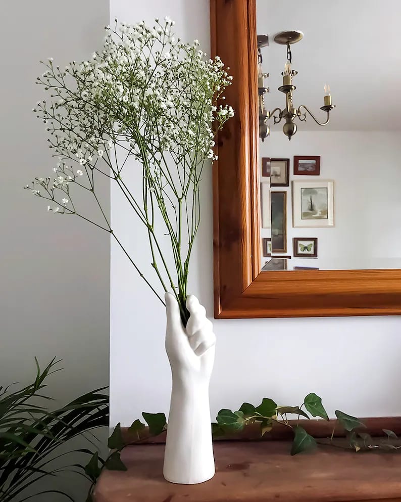 This is a unique design of flower vase that will make it look amazing even without flowers in it.nIt is available in 3 colors- white, blue, and grey.nThis statement vase can be the focal point for the interior design of the rest of your house.nThe design resembles a hand offering flowers to a beloved. It can be ideal for gifting purposes.nThe Artment is one of the leading home decor brands, that creates unique designs which are eye-catching and utilitarian in nature and a worthy investment for your home.nHand Me The Flowers is a gorgeous addition to your home decor. It can be displayed in the show cabinets or set on the foyer table. This flower vase’s unique design is going to add an x-factor to your decor.n