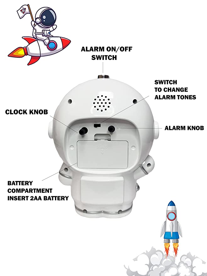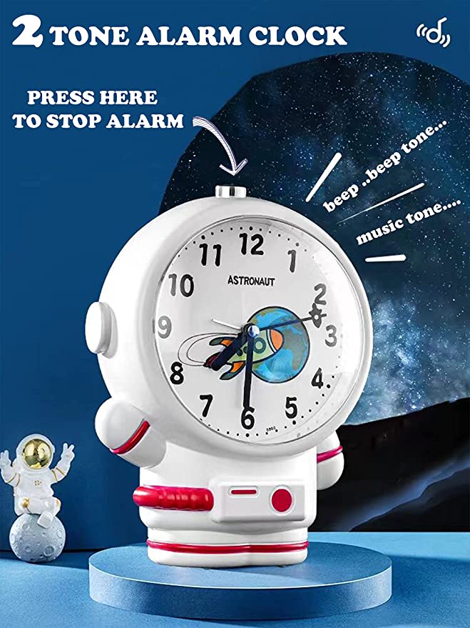 RIANZ Outer Space Astronaut Night Light Table Alarm Clock for Kids and Adults – with Two Different Alarm Tones (Multi Color)