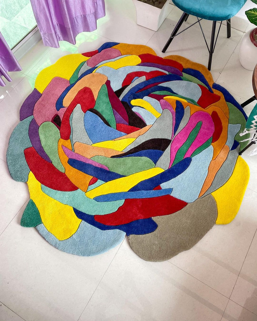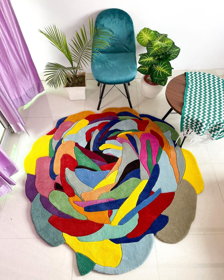 SIZE 5*5 FEETn? Material: 100% New Zealand Wooln? Quality: 4000 GSMn? Hand Tuftedn? Style: Cut-Pilen? Highly Skilled Craftmanship